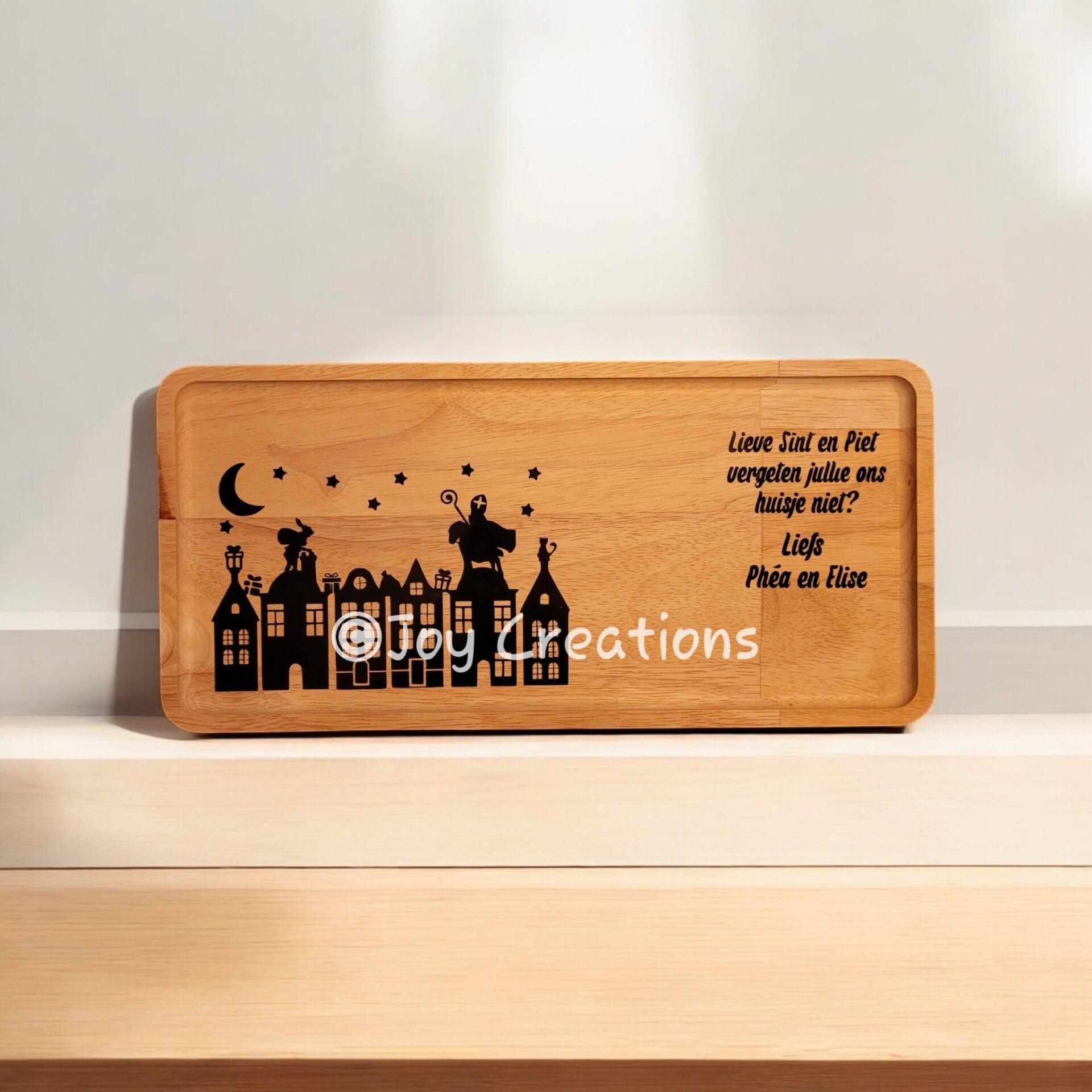Dit plankje kan gebruikt worden om de sint zijn koekjes en mandarijntjes op te laten leggen alsook kunnen de kindjes er bij het schoentje zetten al ren snack en/of drankje opzetten voor de Sint.