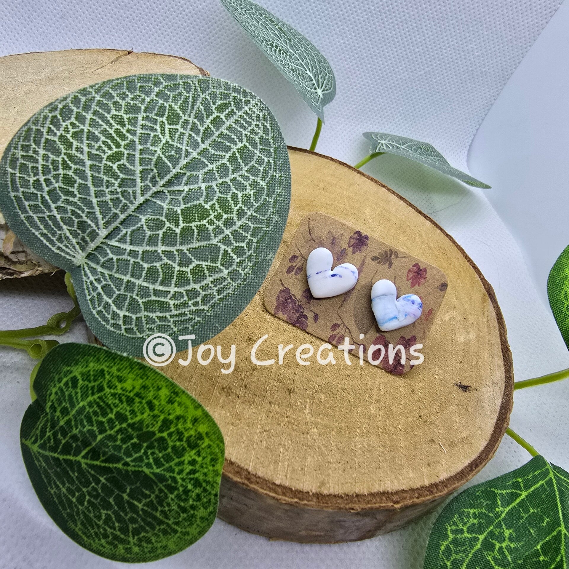 Oorbellen studs Hartjes marmer blauw