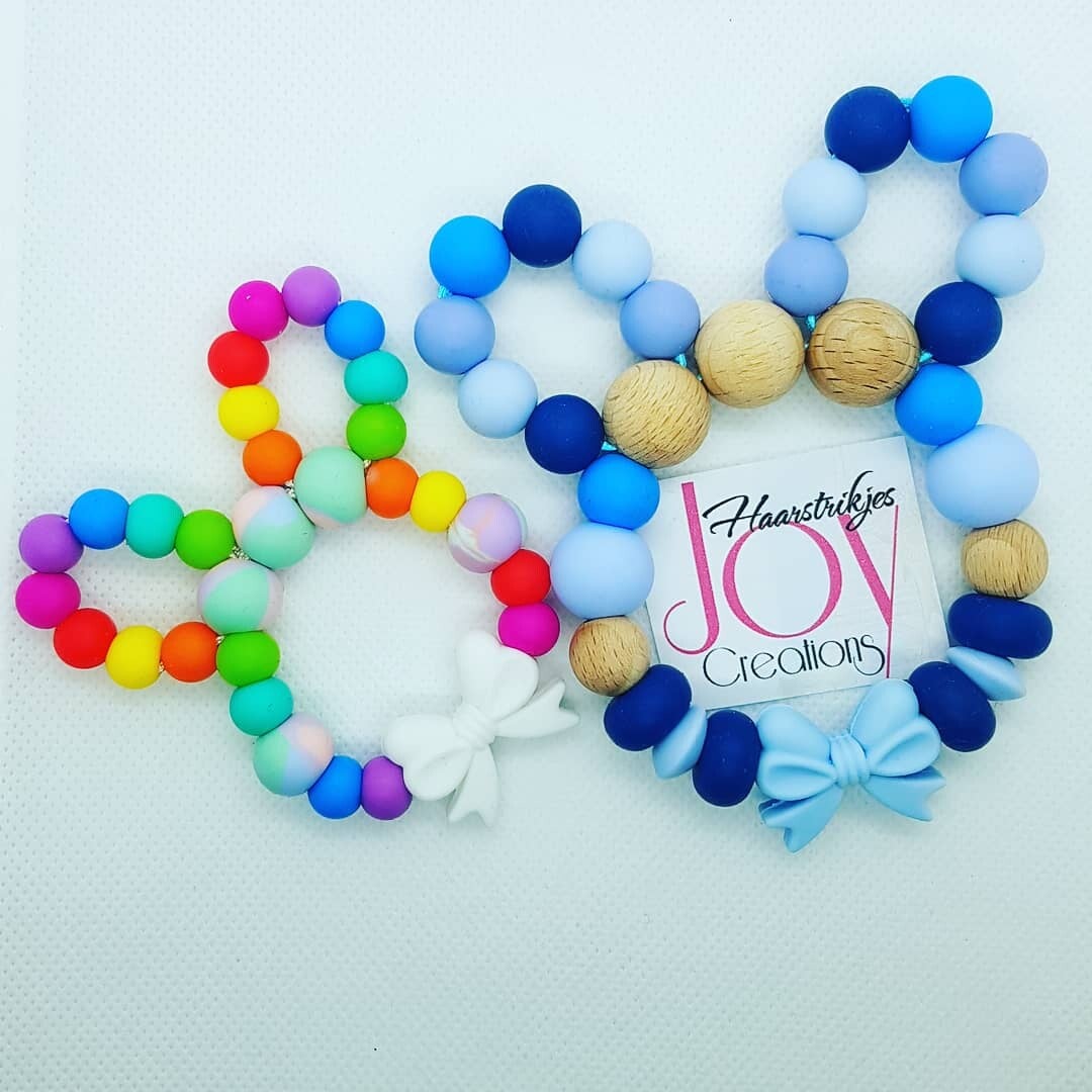 Kleine versie wordt enkel met silicone bijtkralen gemaakt. +- 8,5 cm