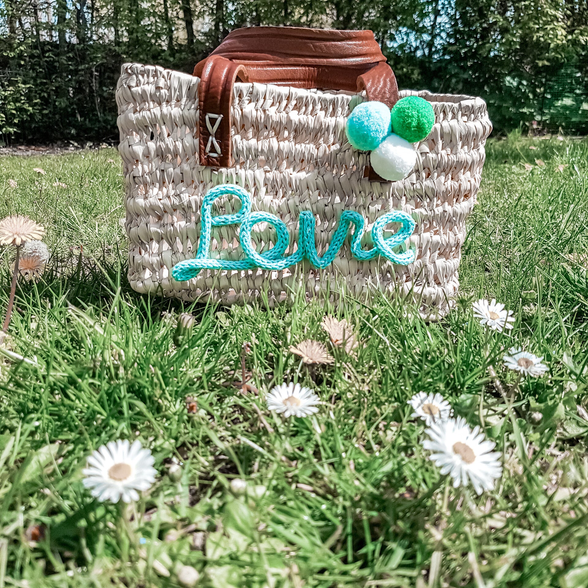 Pomponnetjes aan het handvat zit er altijd bij. De kleuren stellen wij hiervoor zelf samen, wij stemmen deze af op de gekozen kleur van de letters.