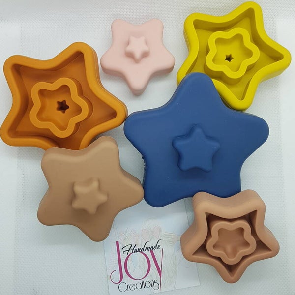 Stacking Stars (stapeltoren). Stapelen met sterretjes, gemaakt uit BPA free siliconen.