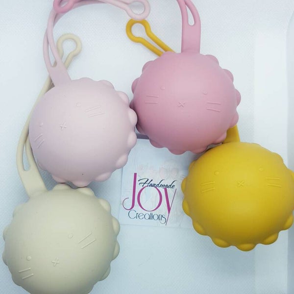 Siliconen materiaal. Kan bevestigd worden aan de verzorgingstas of aan buggy.
