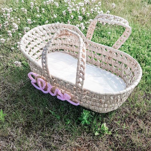 Je kan een eigen personalisatie aan dit wiegje geven door een ander woord of de naam of initialen erop te laten zetten, dit is incl de prijs. Ook zijn er verschillende kleuren voor deze letters.
