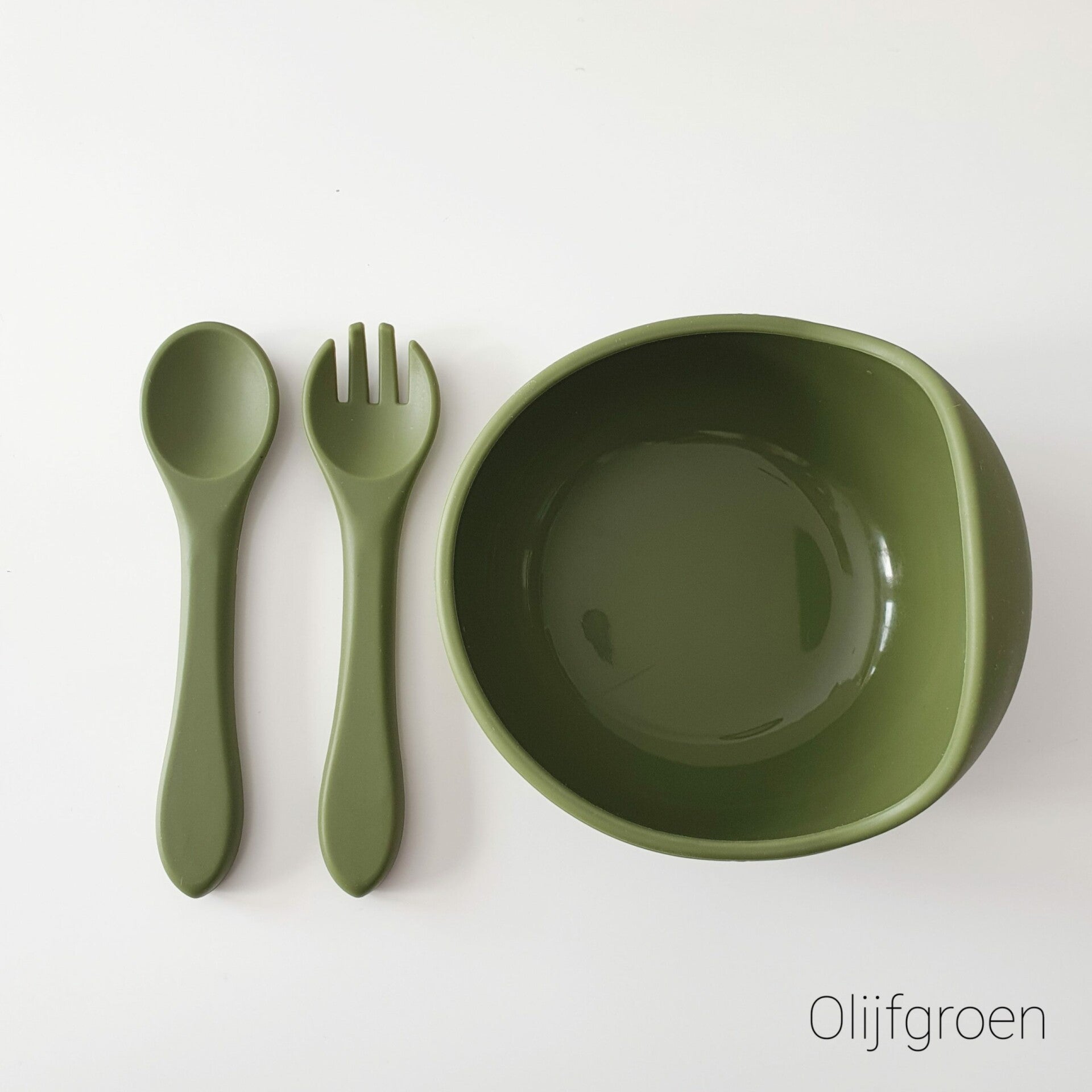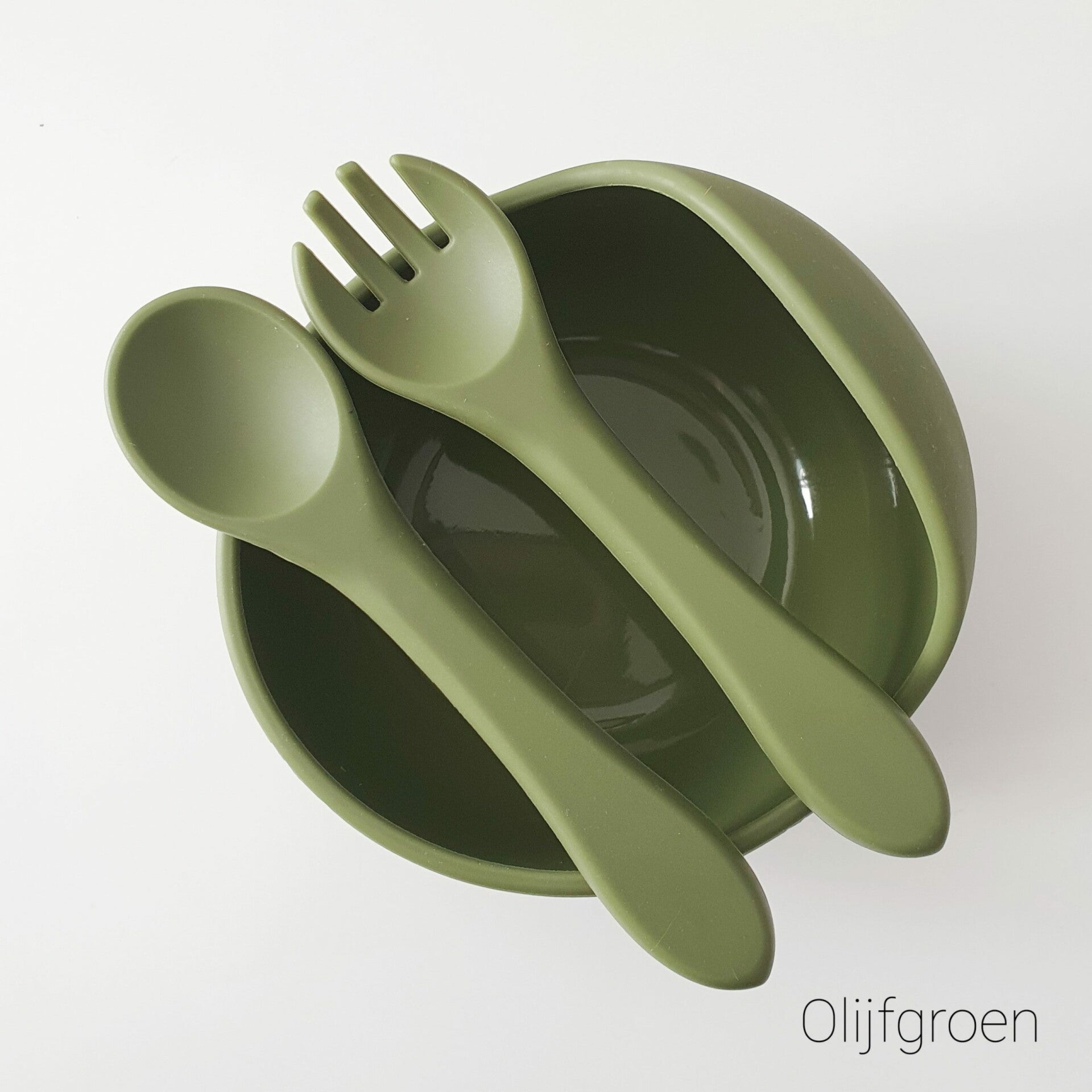 De kommetjes hebben een diameter van 12 cm en zijn 6 cm hoog. Daarnaast zijn onze siliconen eetgerei gemaakt van 100% veilig materiaal. Ze bevatten geen BPA, pvc of andere slechte stoffen. Je kunt je kind er dus met een gerust hart op laten sabbelen.