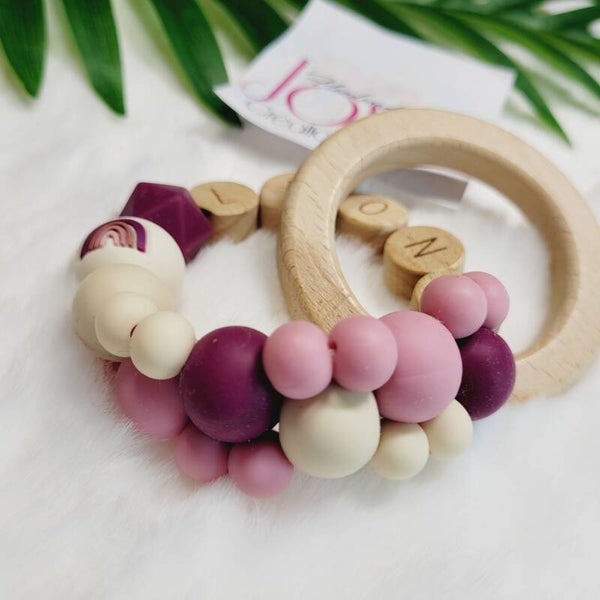 gepersonaliseerde bijtring met houten letters