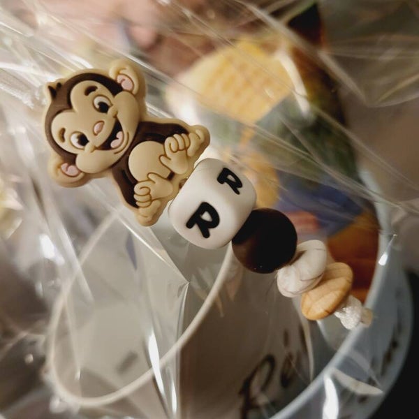 Hanger met initiaal. ideaal als kenmerk voor een tasje of tutje of als jaszippertje, omdat die kleine handjes vaak nog niet zo fijne ritsjes kunnen vastpakken.