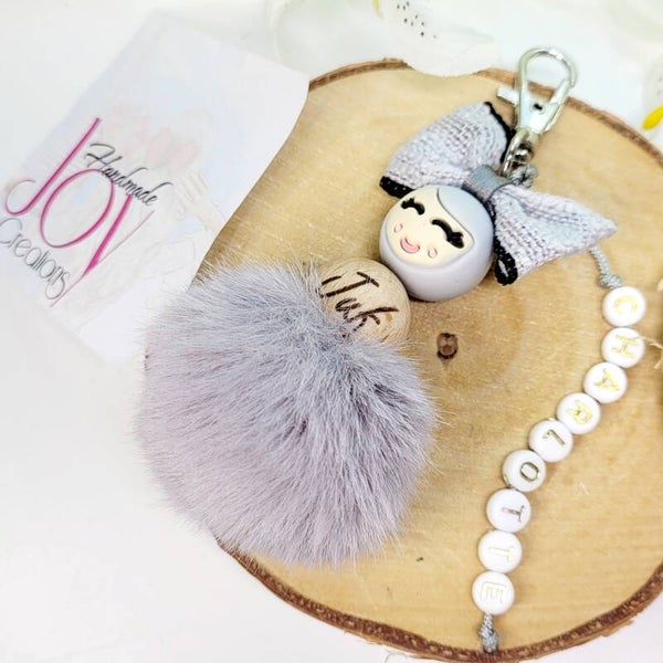 Meter / juf / mama / tante ...... sleutelhanger met gelukspopje met pomponnetje.