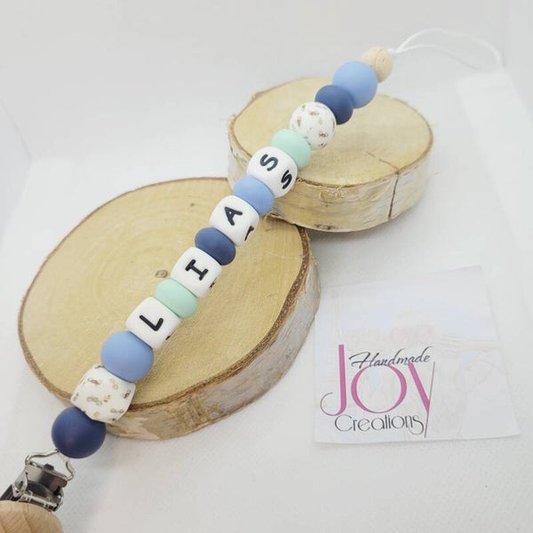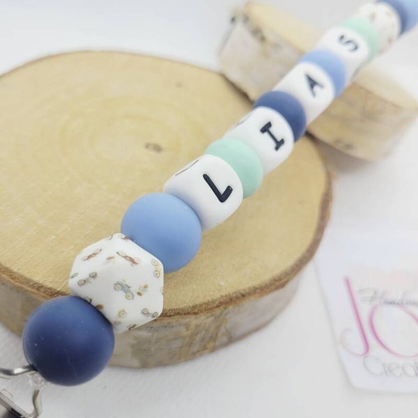 Fopspeenketting met houten clip en retro cars.